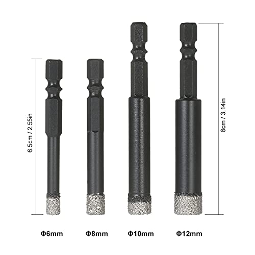 Specification: Flytise Droge diamanten gatenzaag 4-delige boorset (6 mm, 8 mm, 10 mm, 12 mm) met zeskantige kop Koelwas voor…