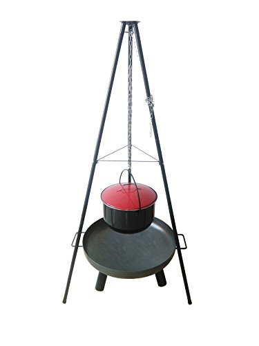 Multi 4-in-1 barbecueset dat is iets heel bijzonder wat je moet gunnen – ja bevat een all-inclusief aanbieding. Daar worden niet alleen de buren jaloers – maar ook je gasten. Als je op je tuinfeest in de zomer of bij je sneeuw- of ijsfeest in de winter je vrienden en gasten een lekkere vlamzalm serveert, kun je daarbij de keuze aan vlees en worstjes ook nog laten zien. Na het lekkere eten in de winter met je gasten en een beker lekkere glühwijn om de vuurkorf gezellen – dan heb je geen 4 producten meer. Alles creëer je in de toekomst met dit multifunctionele talent dat je variabel op je behoeften kunt instellen. Deze partykracher bestaat uit: 1 zwenkgrillframe ca. 180 cm hoogte inclusief grillrooster met ca. 55 cm diameter – 1 vuurschaal / grillschaal van massief ijzer en ca. 60 cm diameter – 2 visfilehouders (voor bijvoorbeeld vlamzalms) met de bijbehorende houten planken – 1 grote, 15 liter. Emailletpan met deksel voor bijvoorbeeld glühwijn of volautomatische soepen. Dit is ons allemaal inclusief aanbod voor jou. Nieuw product – origineel verpakt