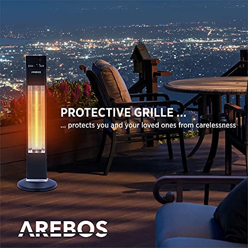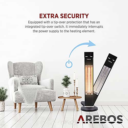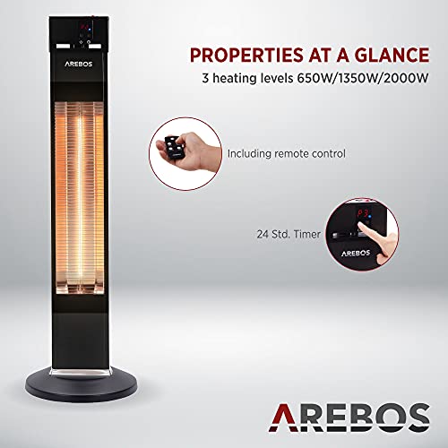 Arebos staande verwarming 2000 W | met afstandsbediening + Tuimelschakelaar | Digitaal display + 24 uur timer | 3…