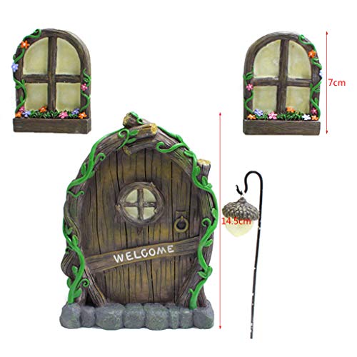 Specification: ANEIZANASALI 3 stuks miniatuur feeën elf huisdeur en ramen gloed in the dark yard sculptuur