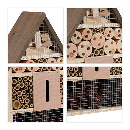 Relaxdays Insectenhotel, nesthulp wilde bijen & vlinders, tuin, balkon, bijenhotel h x b x d 37 x 26 x 11 cm, natuur