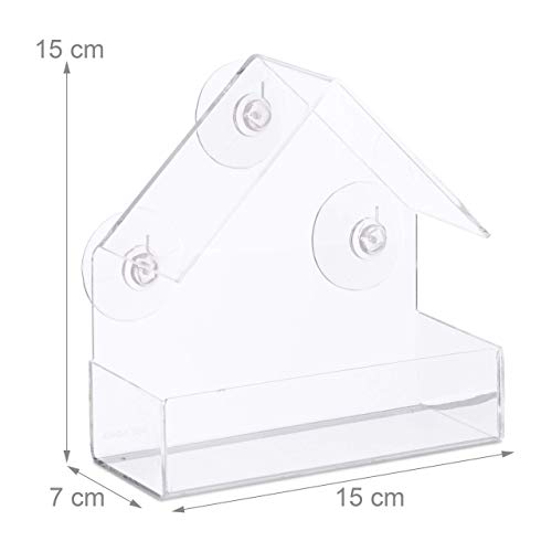 Specification: Relaxdays vogelvoederhuis, voor wilde vogels, 3 zuignappen, voederstation met dak, h x b x d: 15 x 7 cm, transparant…